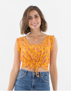 Blusa viscosa mangas 3/4 estampado arabesque
