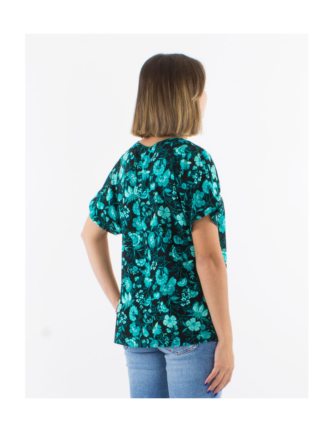 Blusa viscosa mangas cortas estampado indio