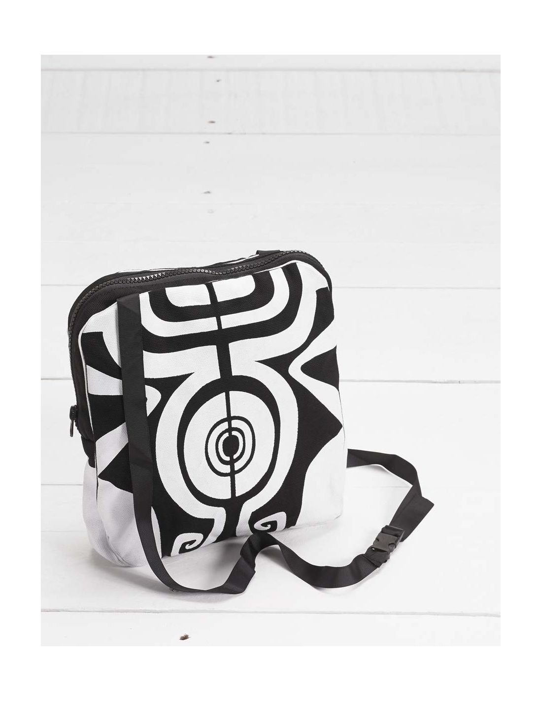 Bolso besace algodon estampado maori a boucle