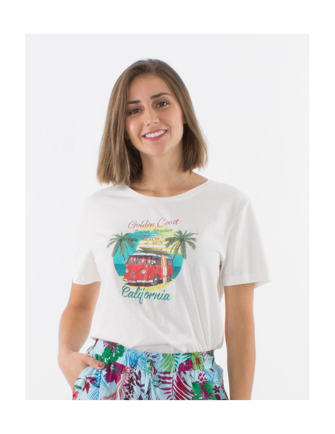 Camiseta algodon mangas cortas estampado golden coast