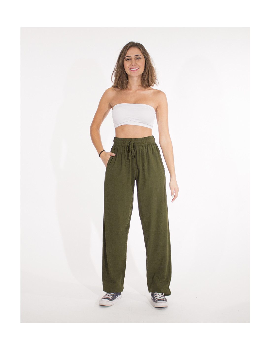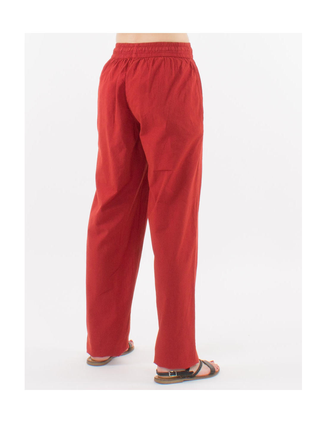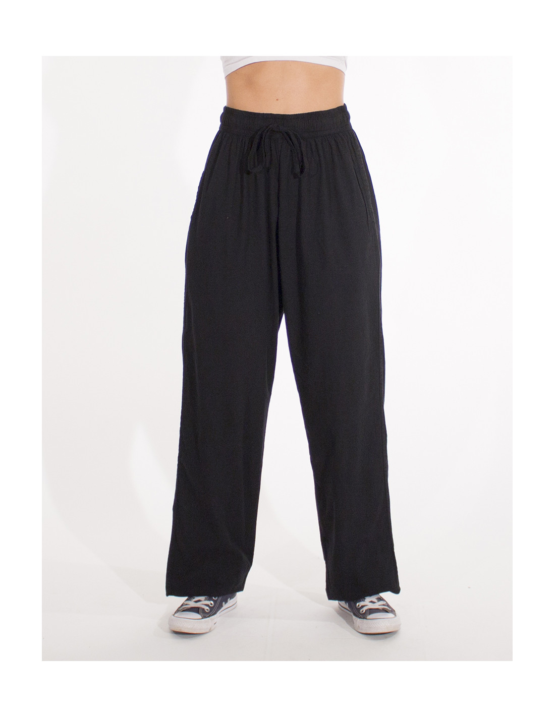 Pantalon algodon fino liso sw mixto elastico cinture bolsillos lados