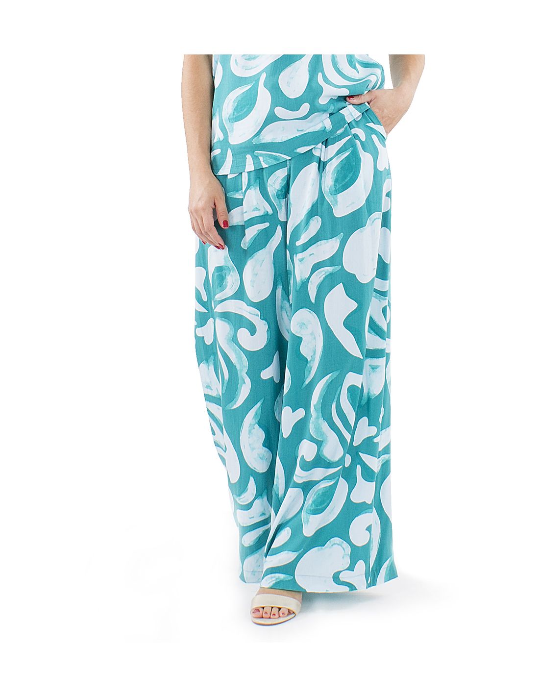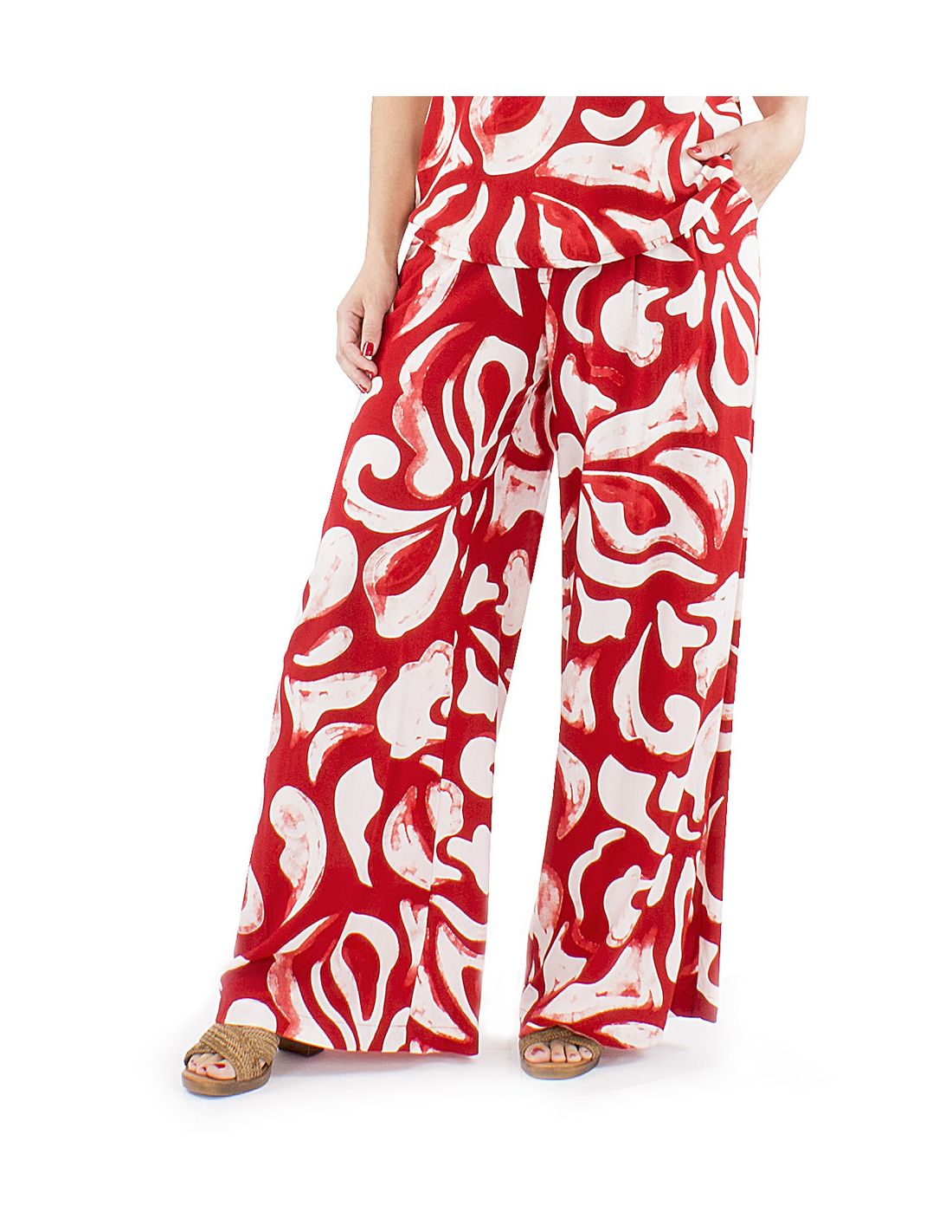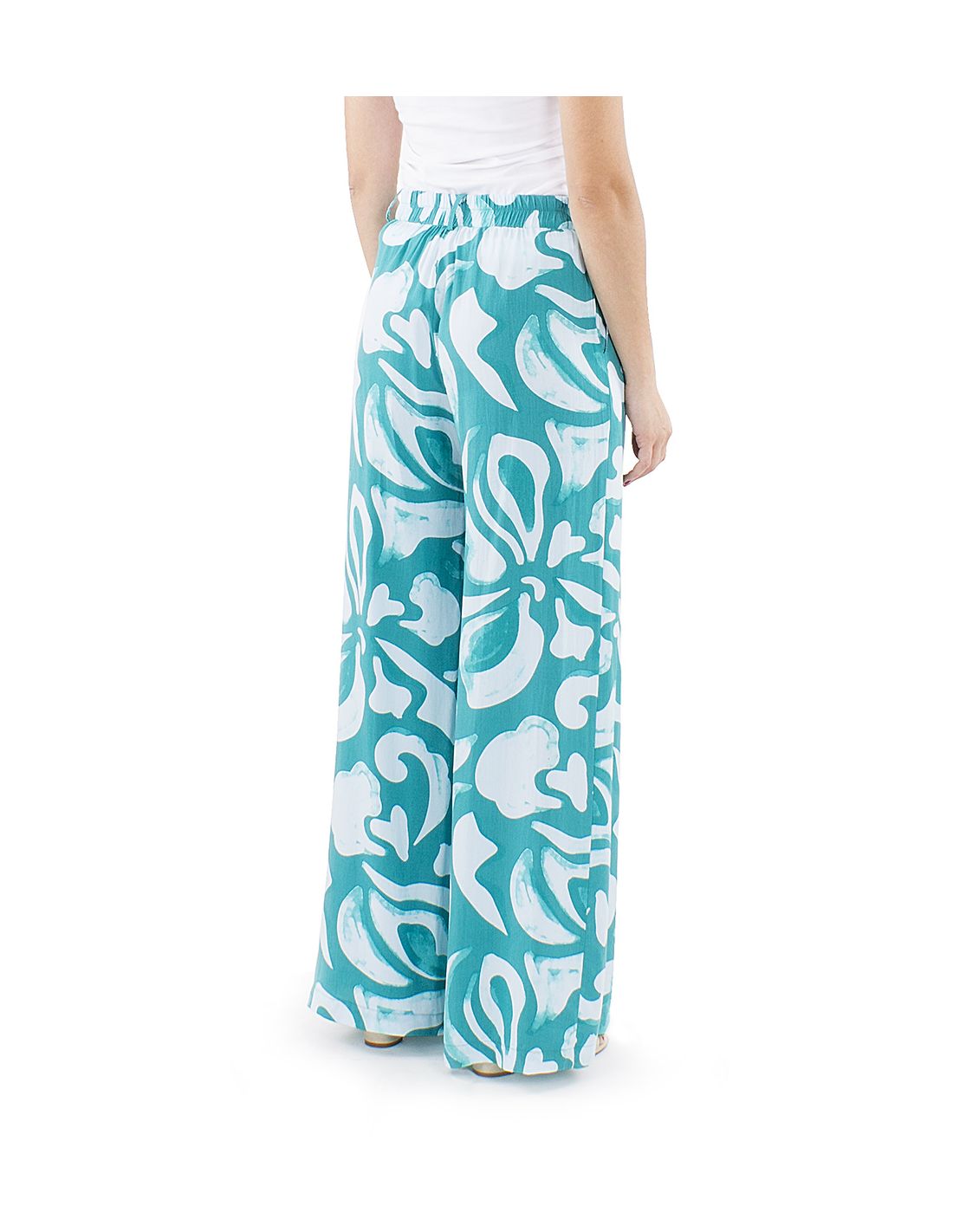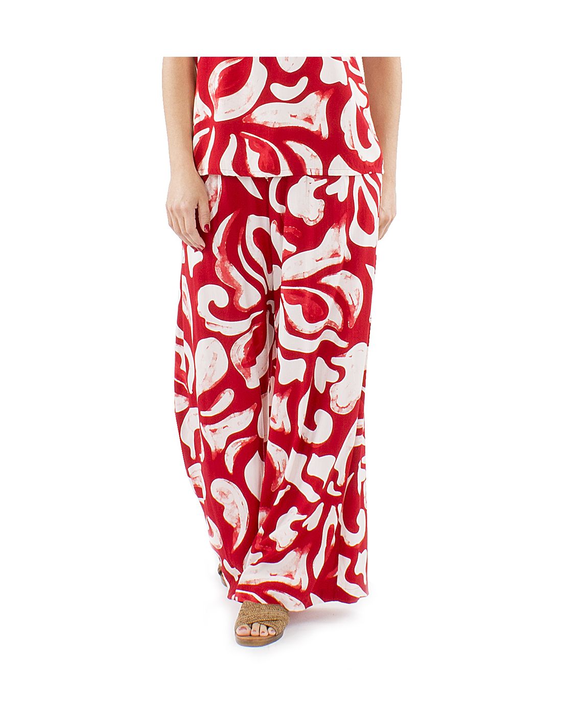 Pantalon viscosa ancho estampado rumba boton cintura 1/2 elastico