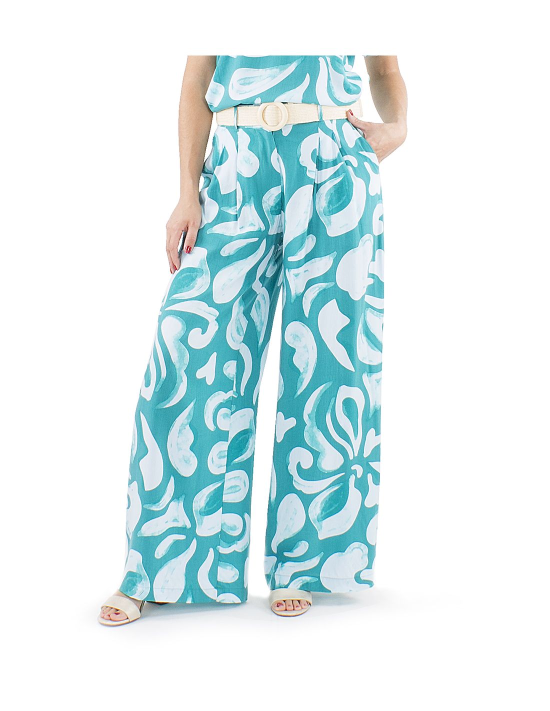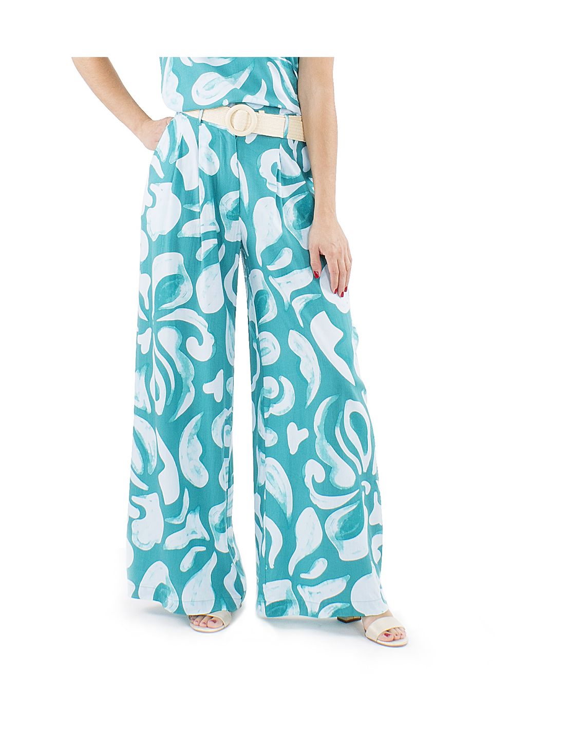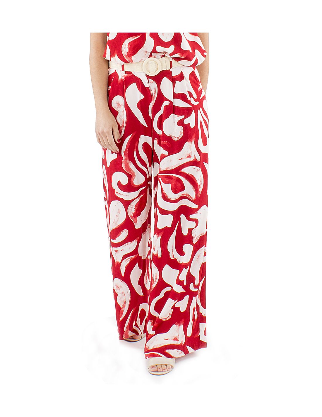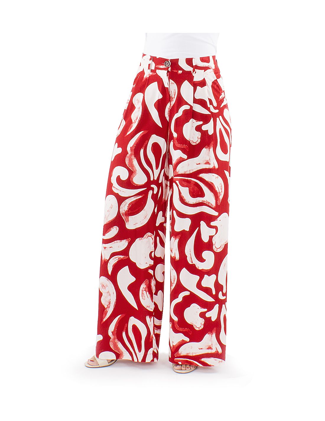 Pantalon viscosa ancho estampado rumba boton cintura 1/2 elastico
