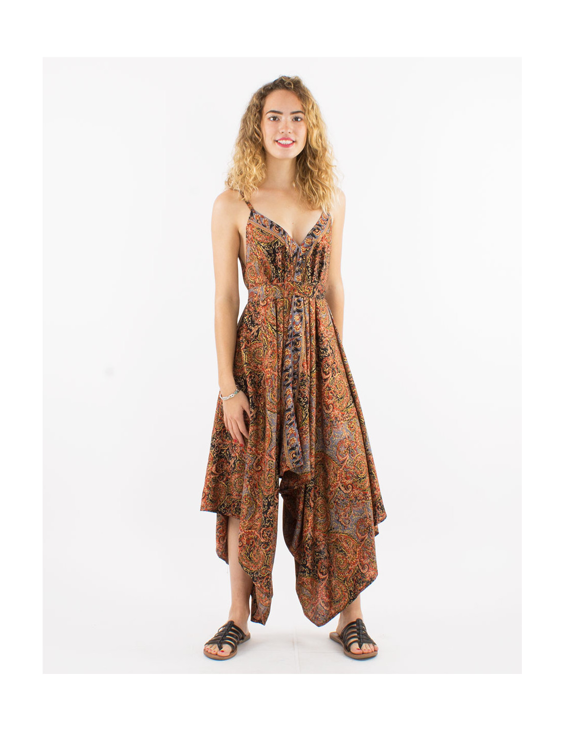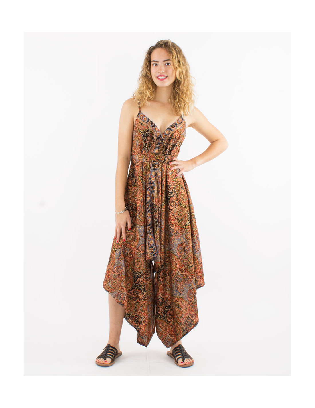 Peto largo poliester tobilloFular sari dorado surtido