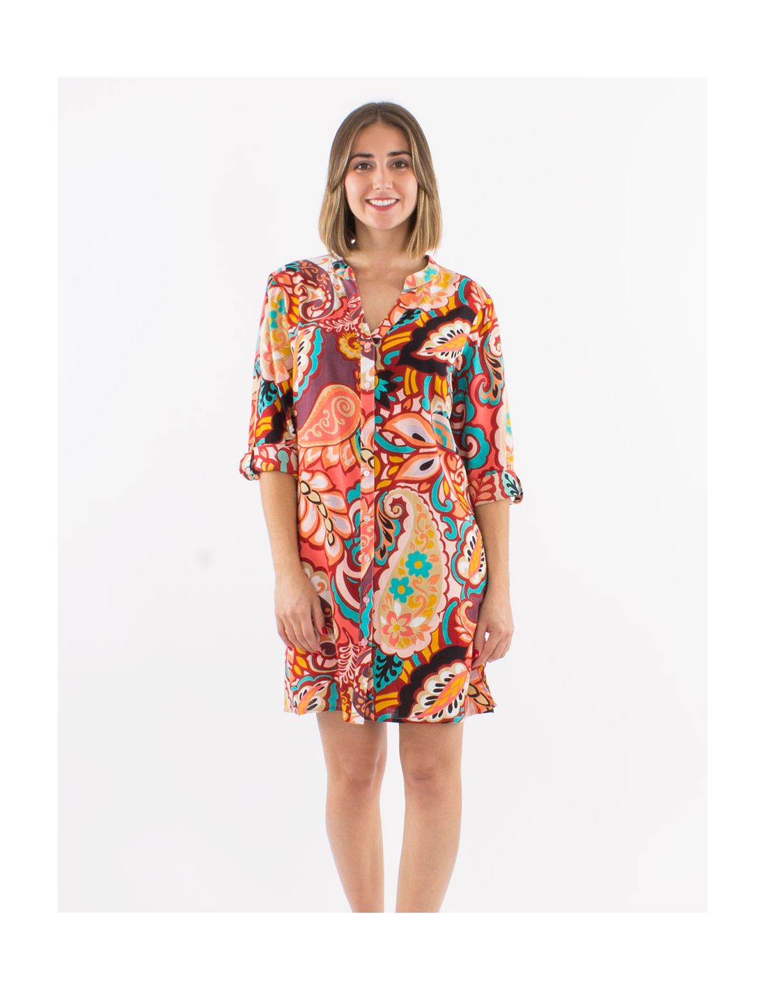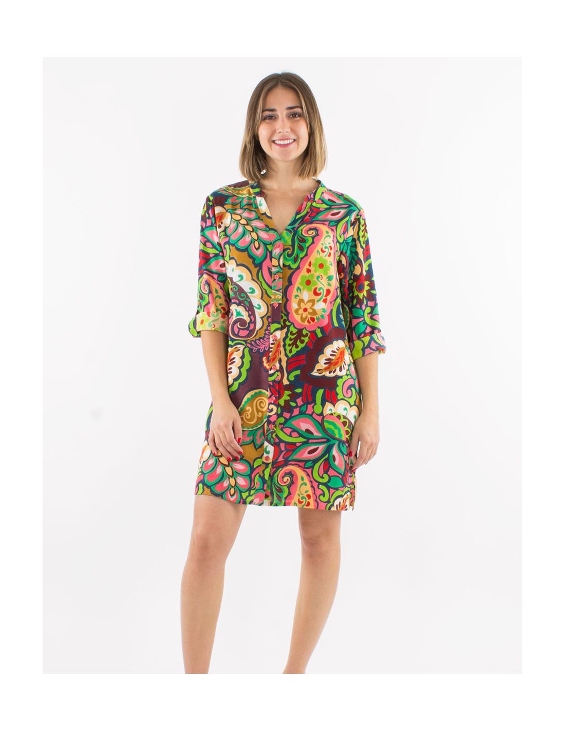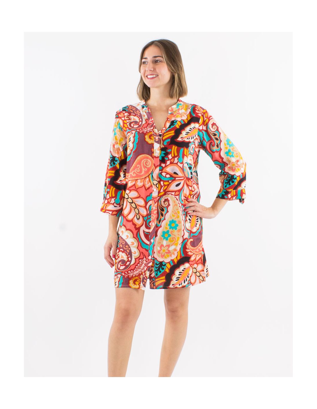 Tunica viscosa con botones mangas largas remangables estampado antalya