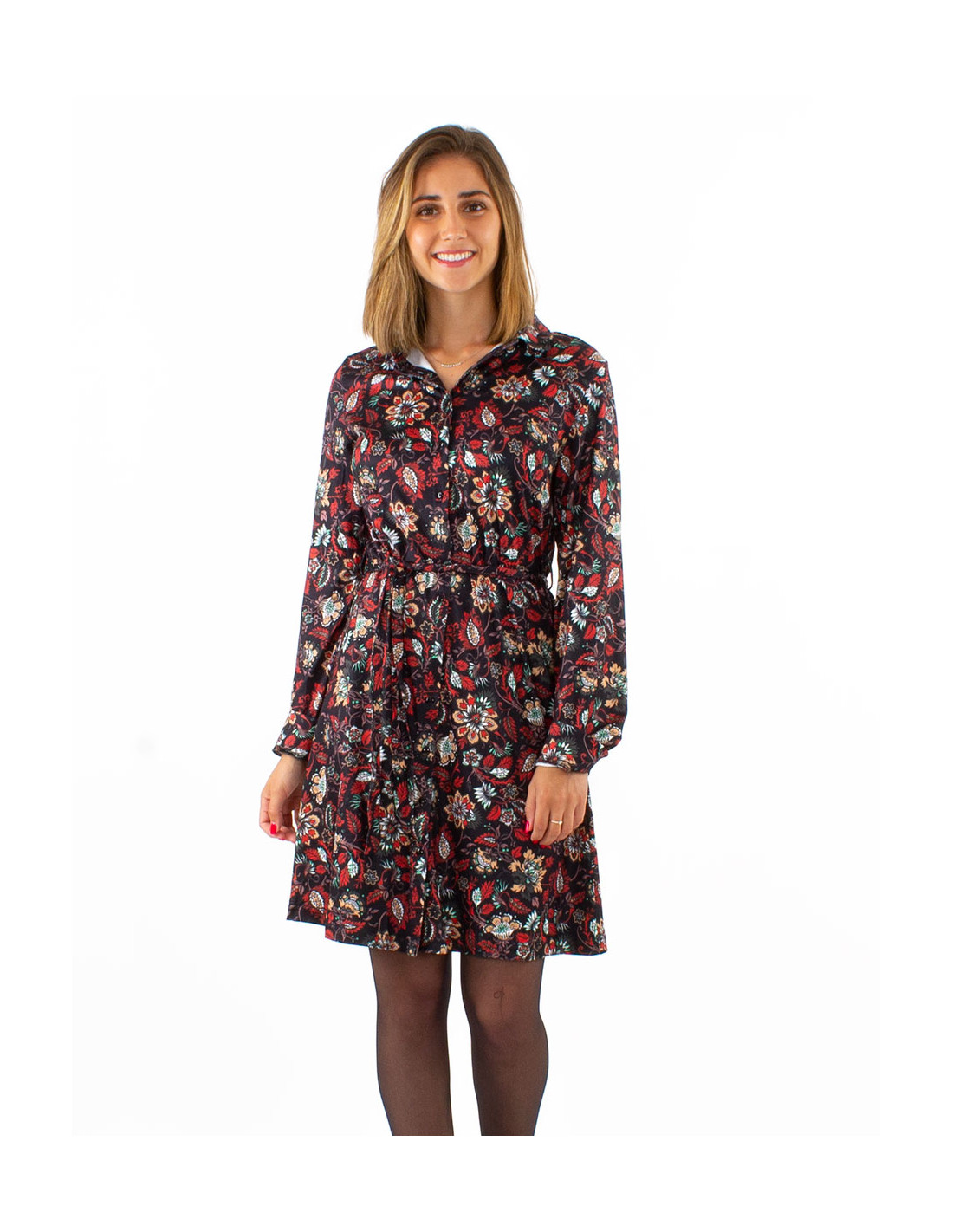 Vestido malla 95% poliester 5% elastano con botones estampado dahila