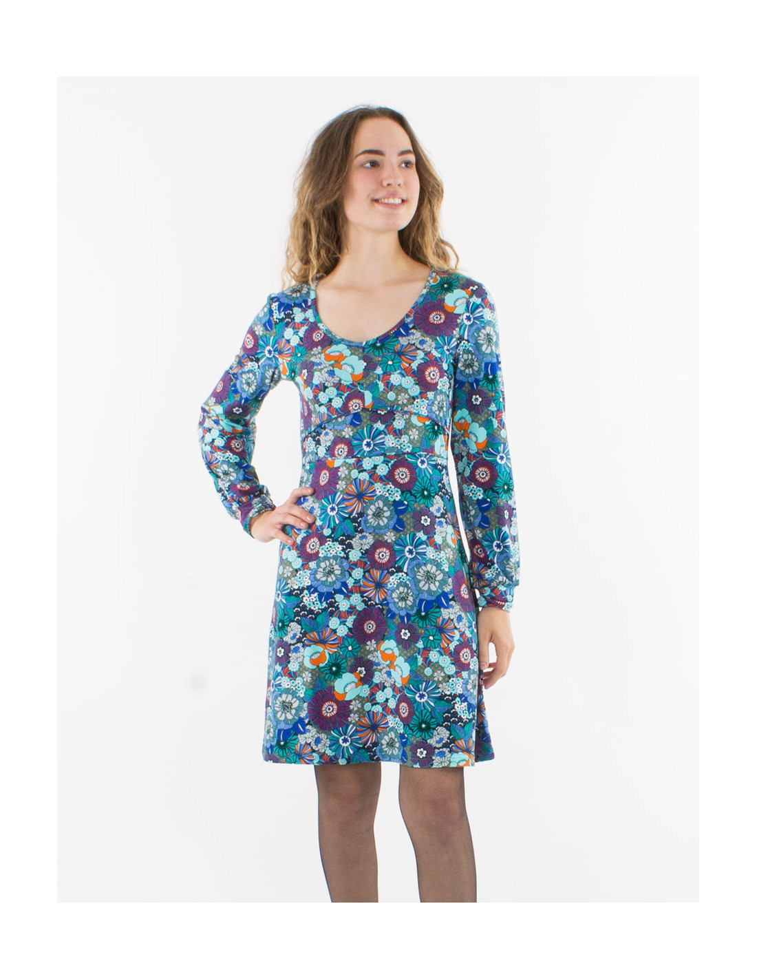 Vestido malla 92% poliester 8% elastano cuello v estampado pop