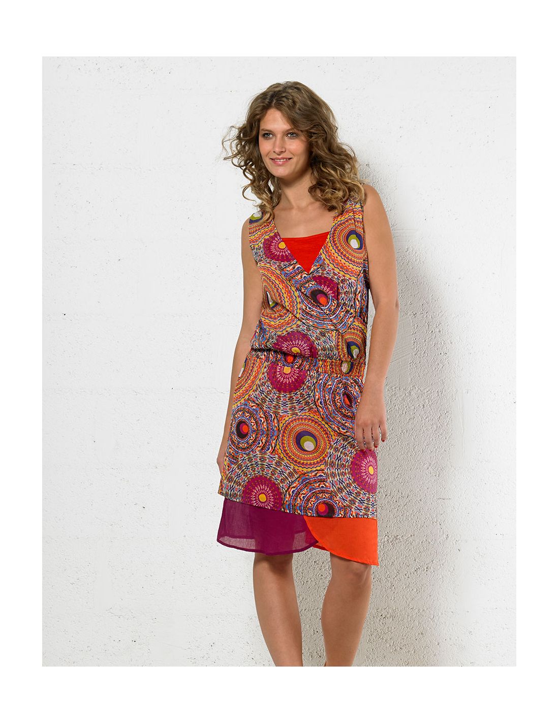 Vestido algodon velo estampado doblado viscosa