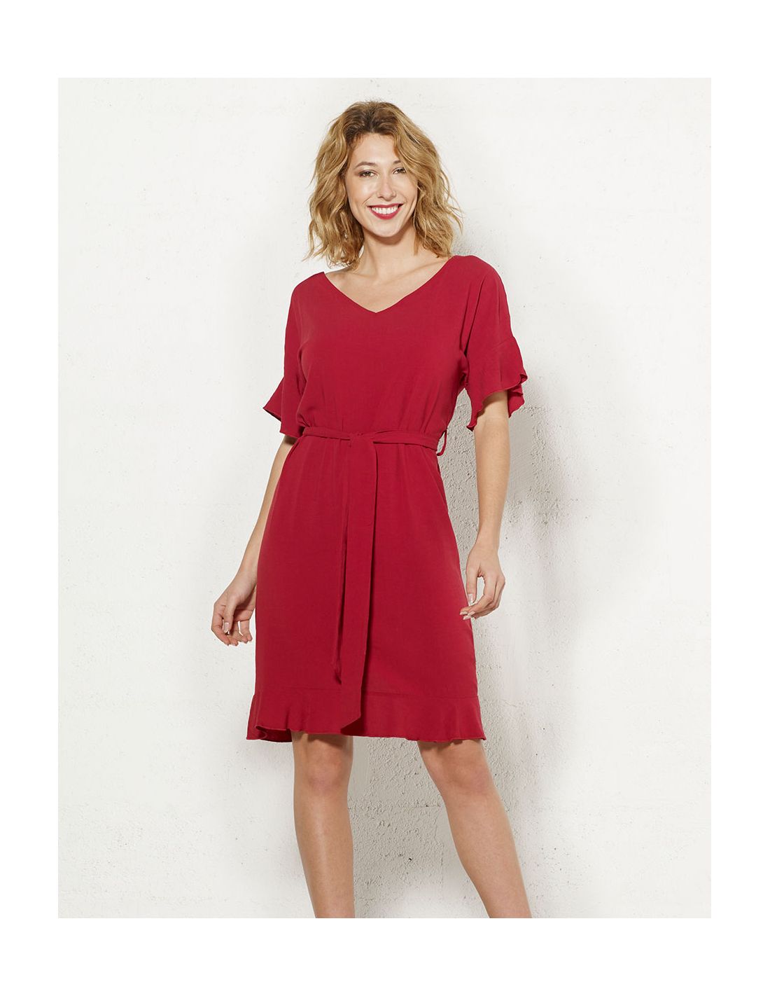 Vestido 88% viscosa 12% lino mangas cortas liso