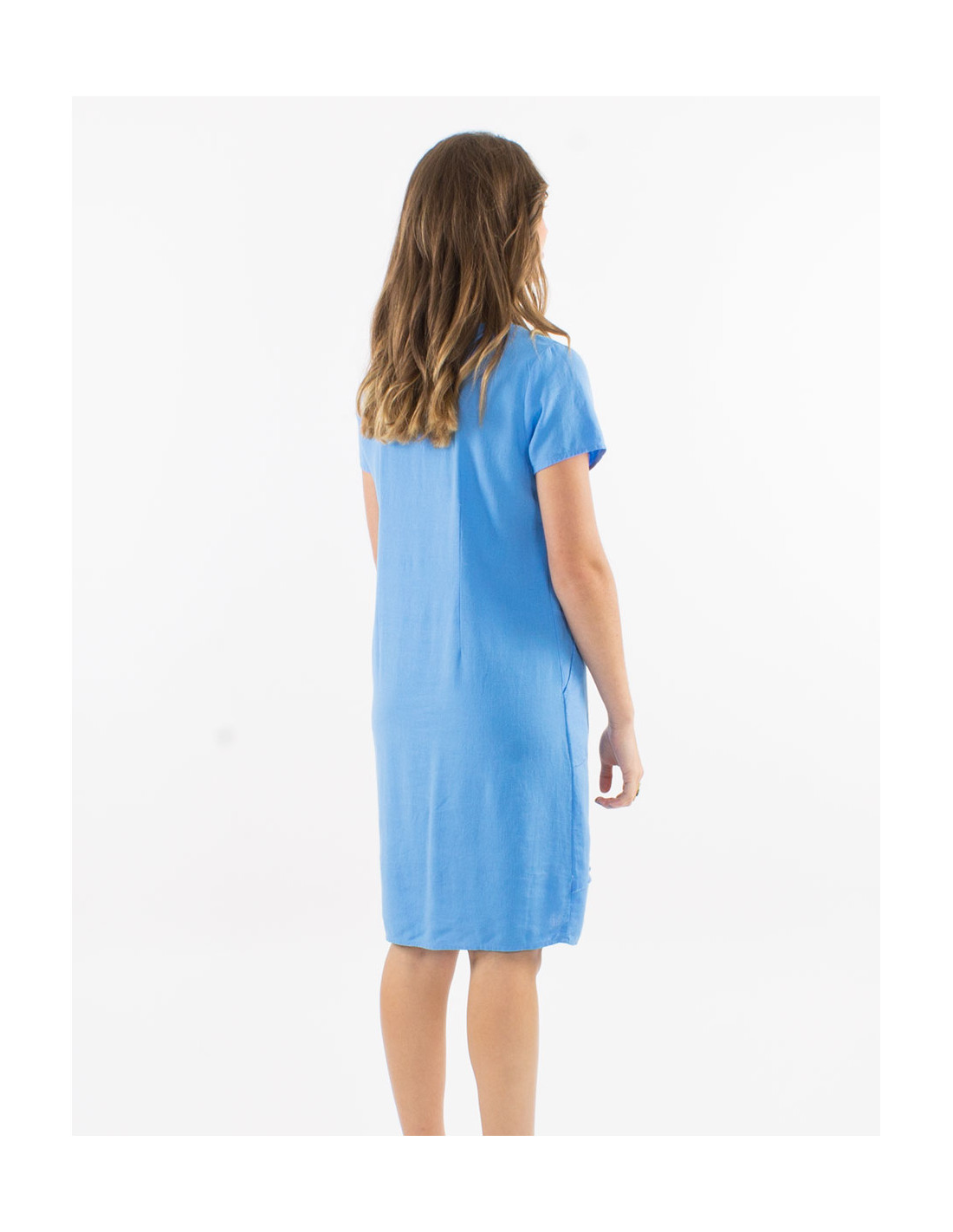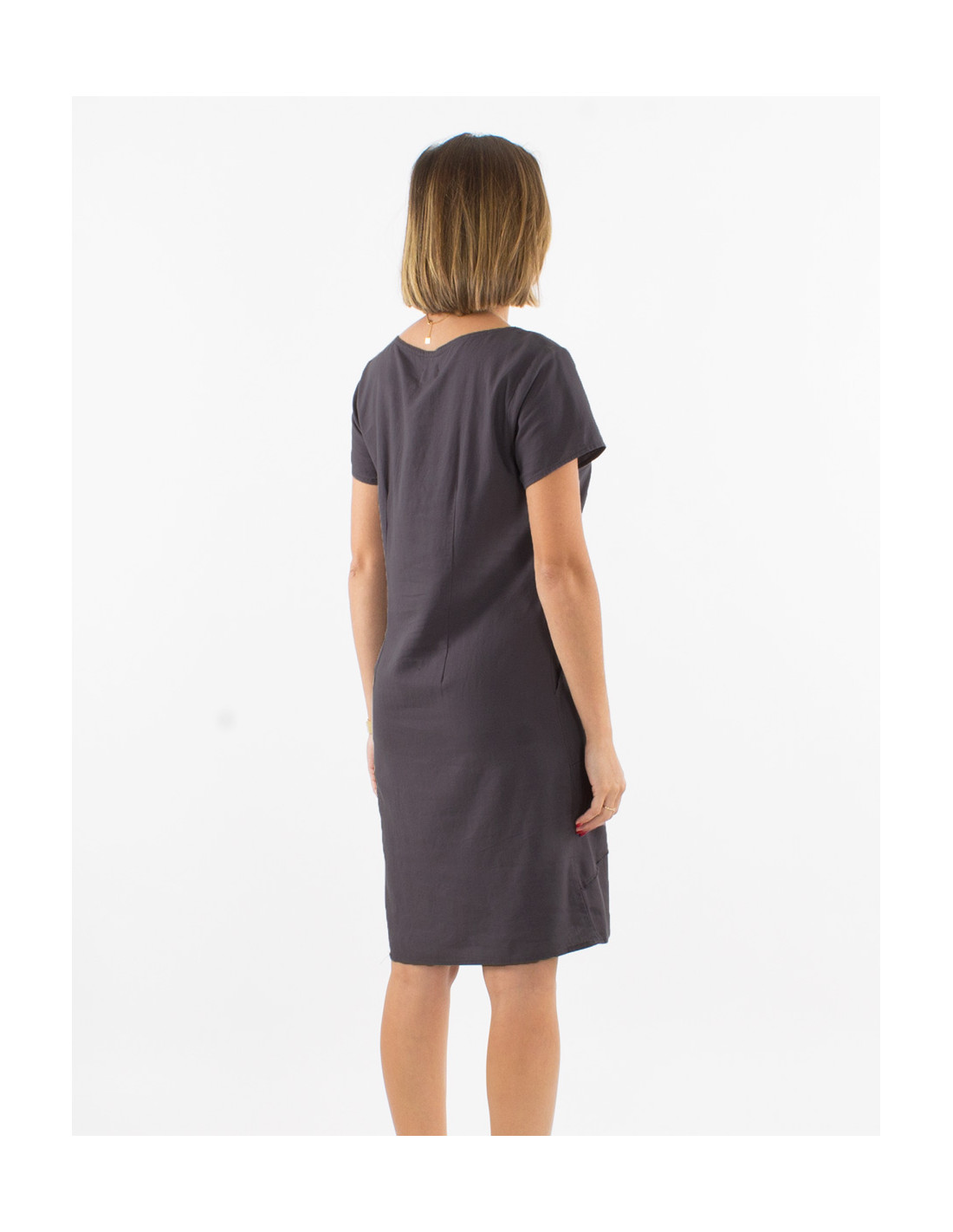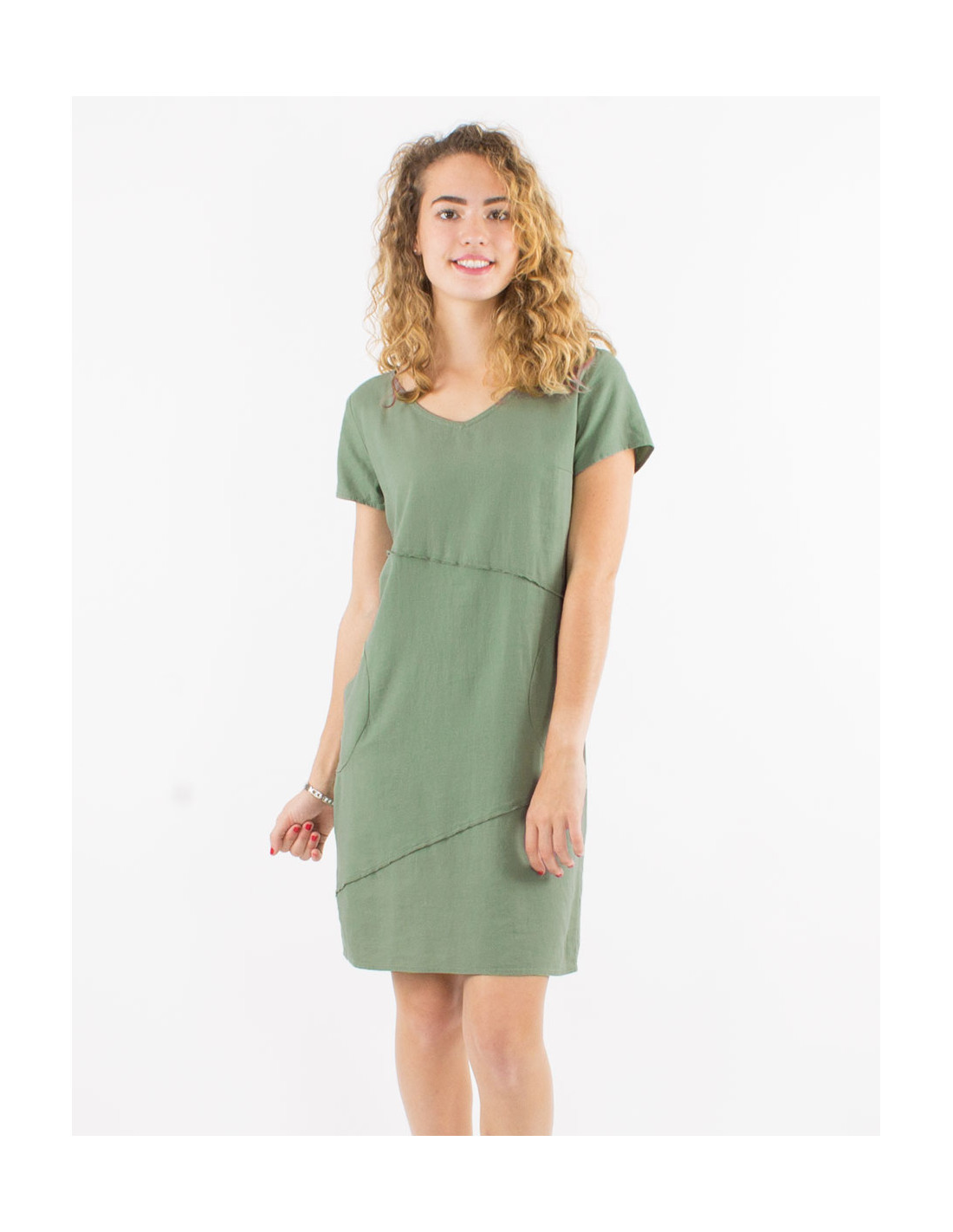 Vestido 54% lino46% viscosa cuello v mangas cortas