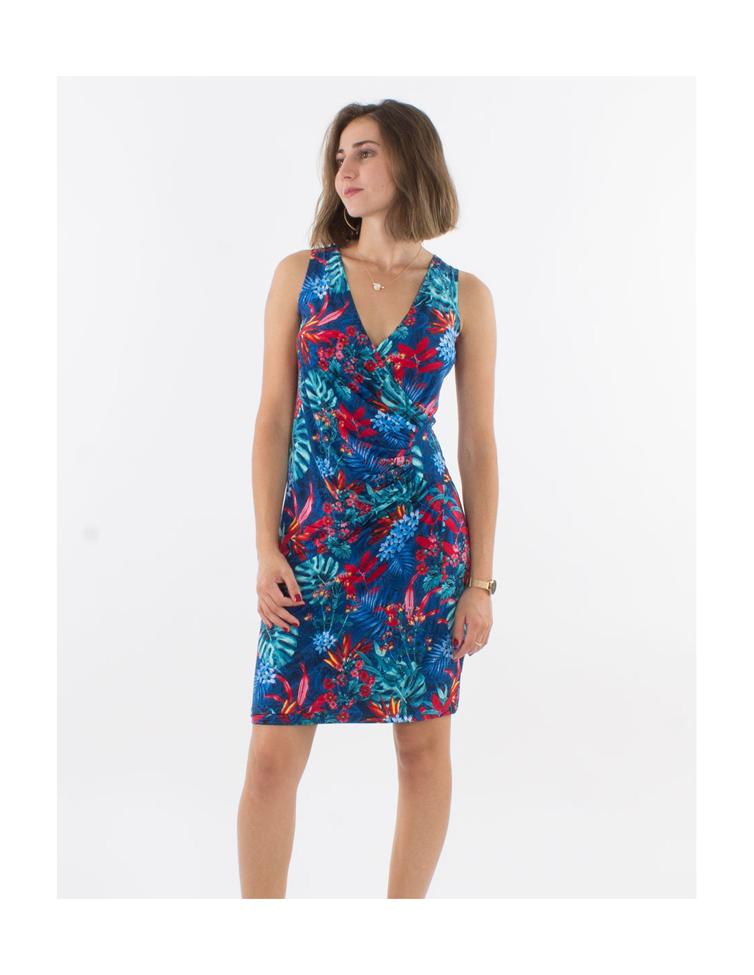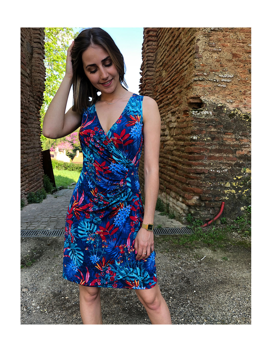 Vestido malla 96% poliester 4% elastano sin mangas estampado martinique