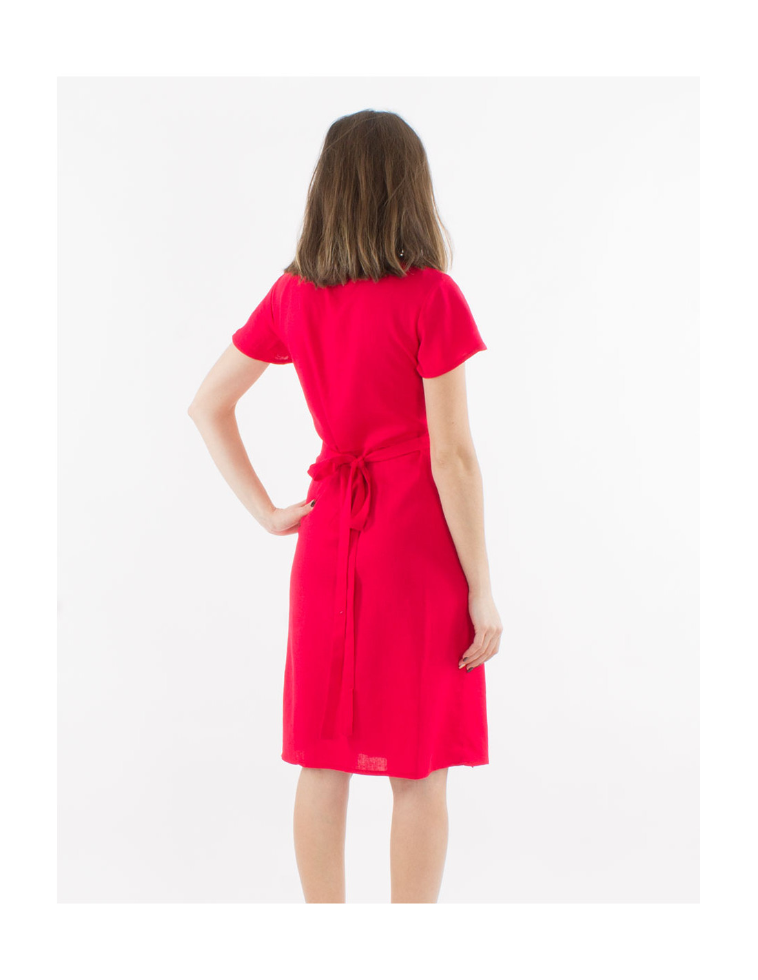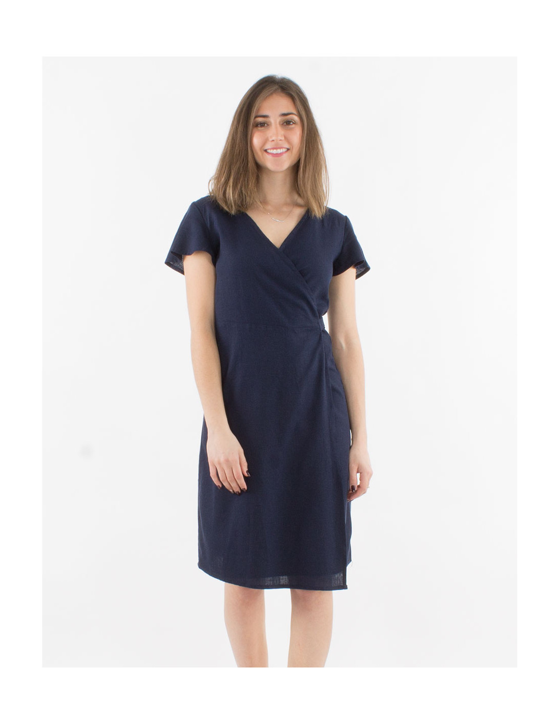 Vestido 54% lino 46% viscosa cruzada mangas cortas