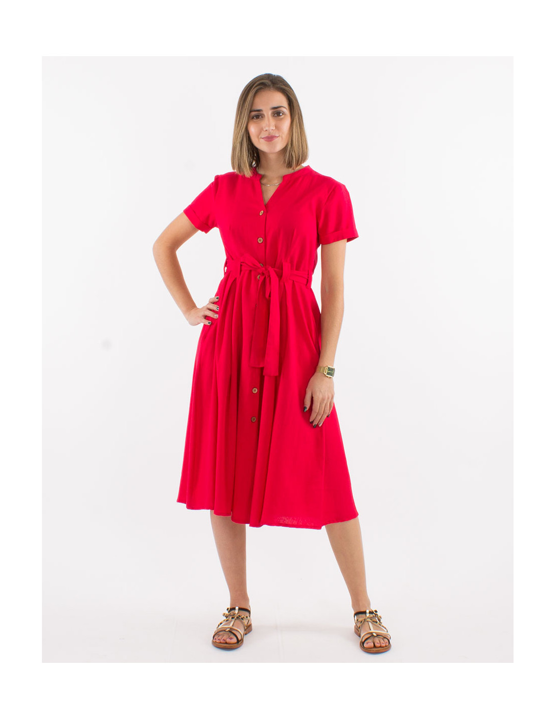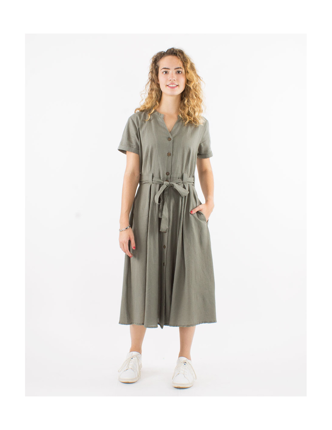 Vestido largo 91% algodon 9% lino mangas cortas cintura
