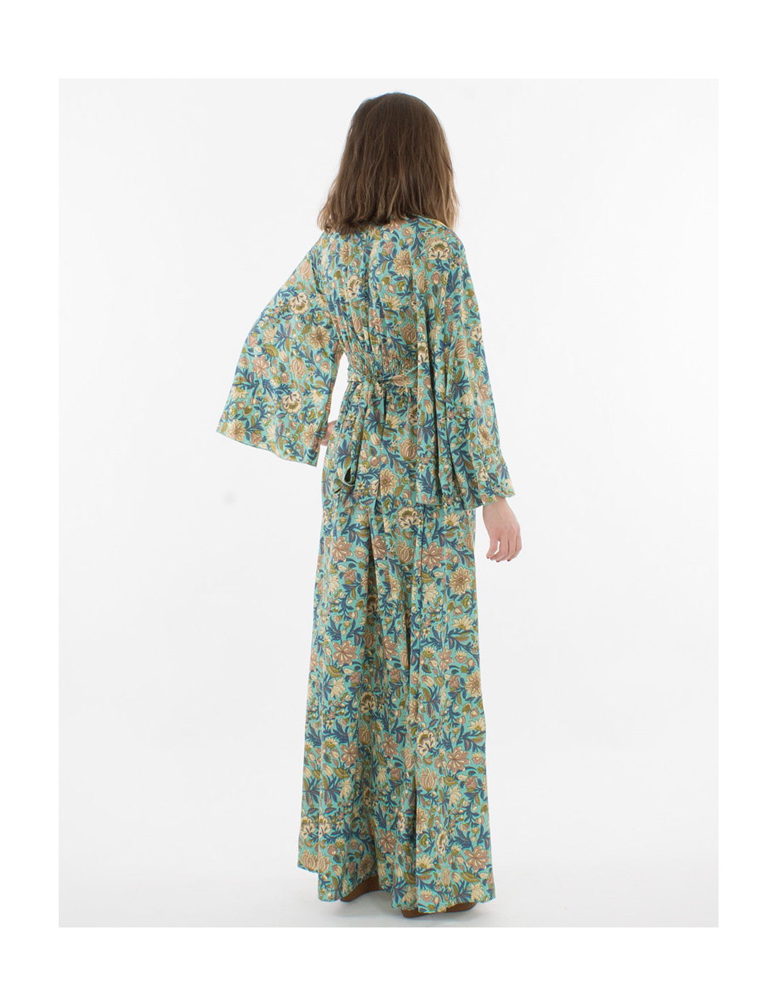Maxi vestido de poliéster con mangas 3/4 y estampado sari