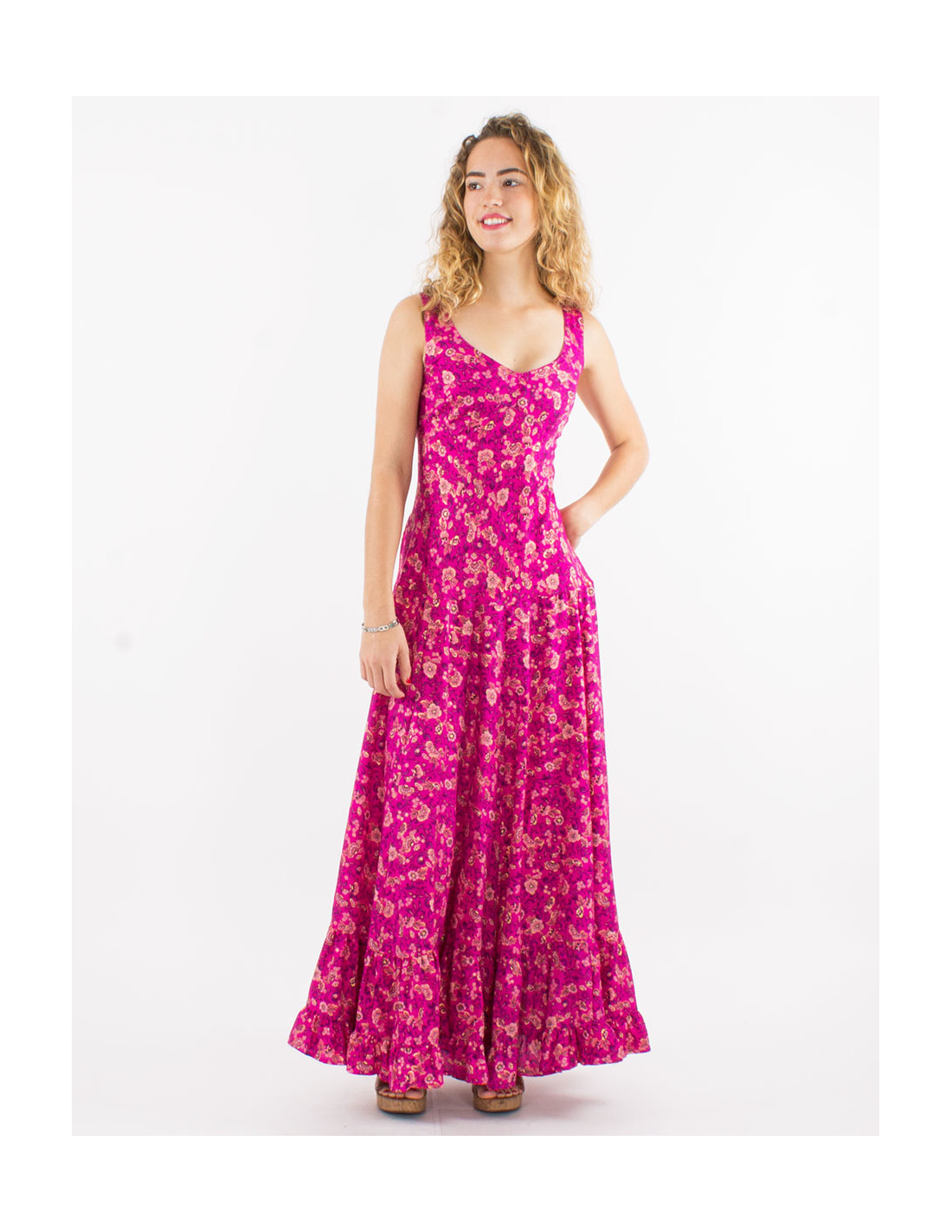 Vestido largo poliester tirantes anchos sari estampado dorado