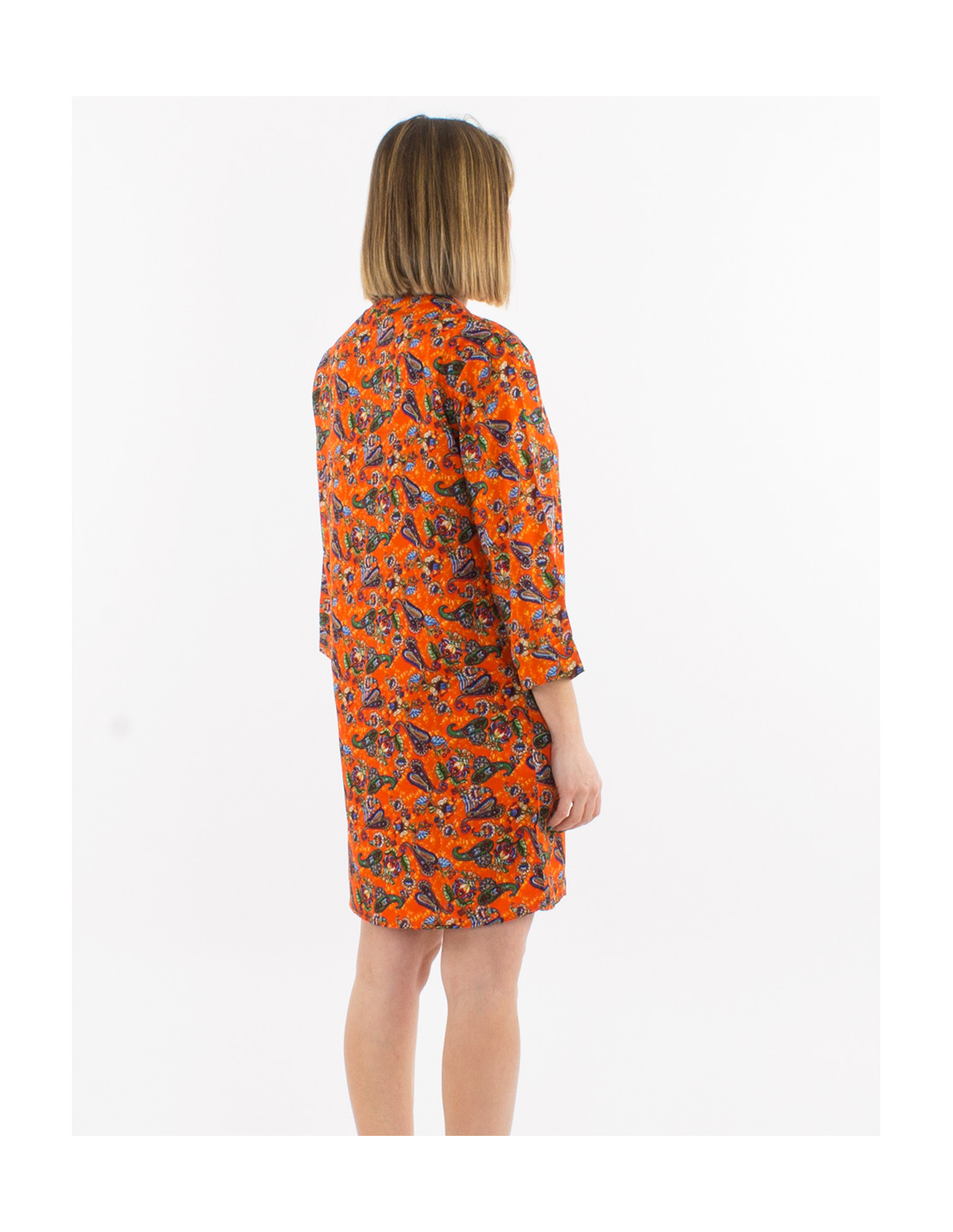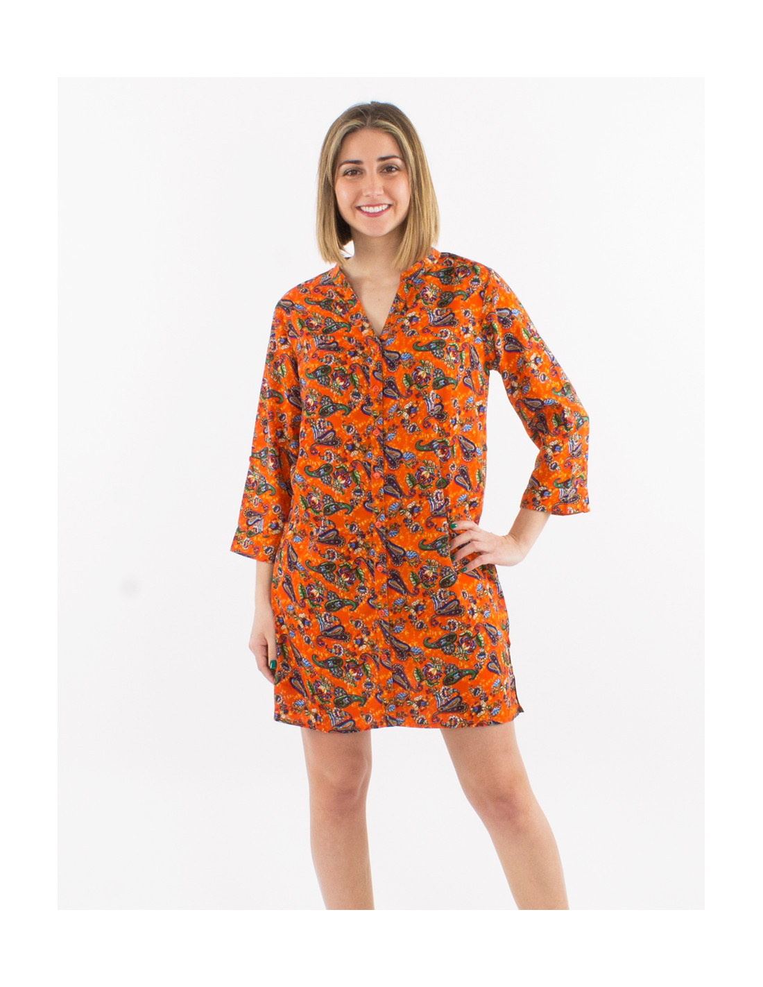 Vestido corto poliester con botones mangas 3/4 remangables estampado mistery