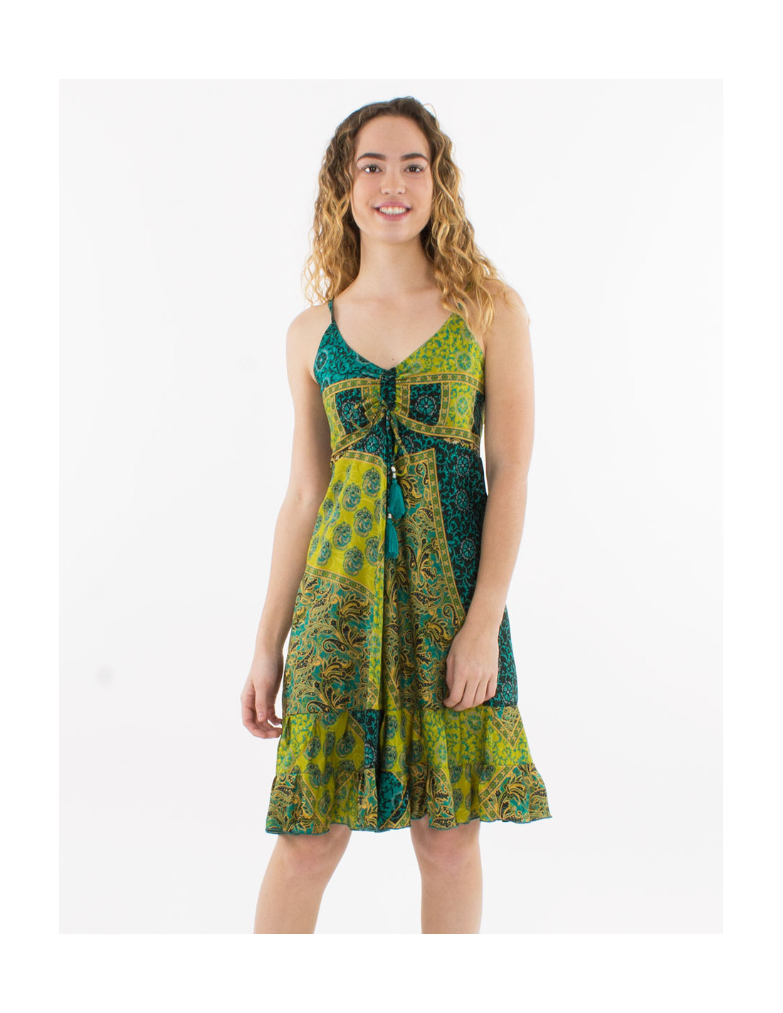 Vestido corto poliester tirantes estampado sari