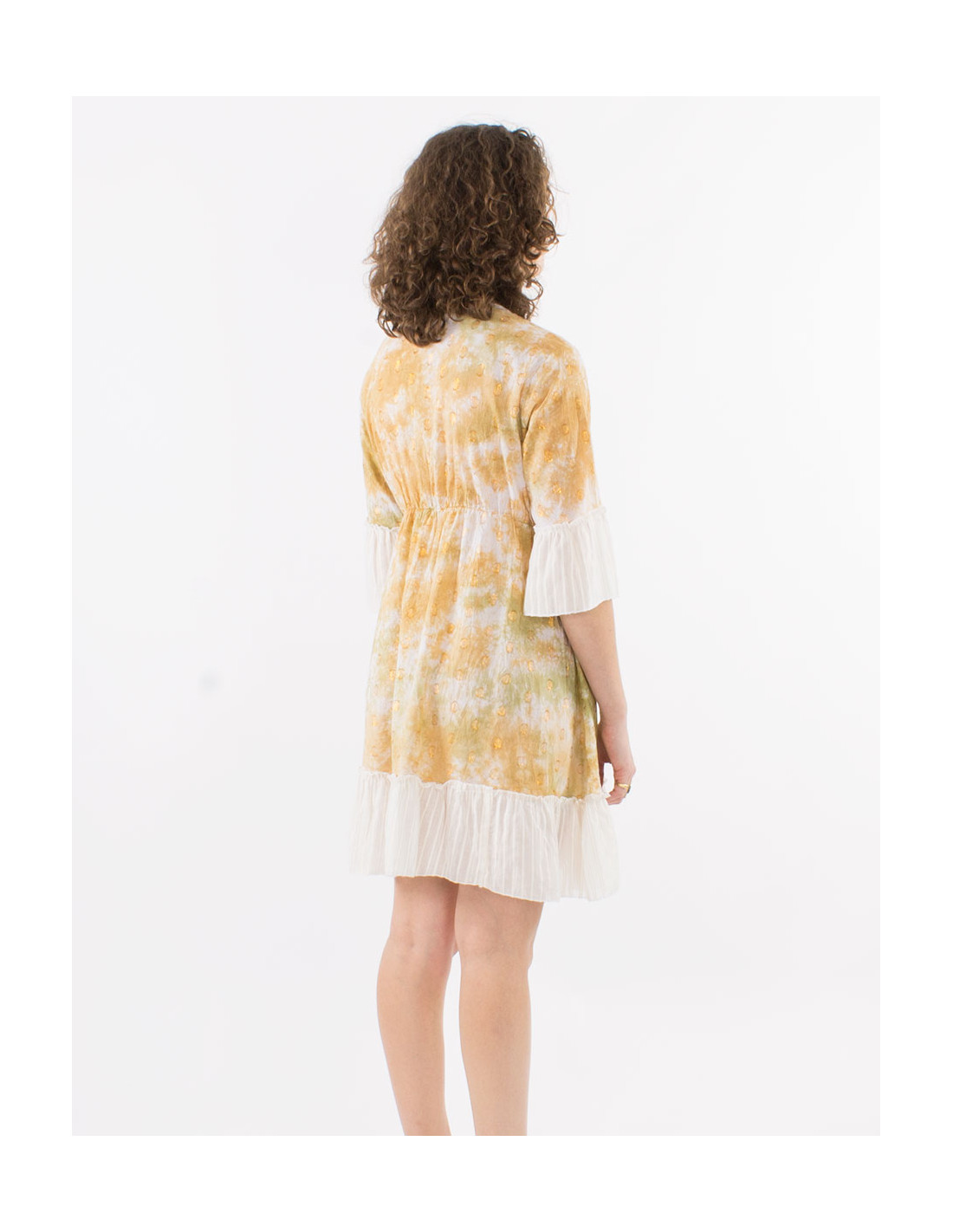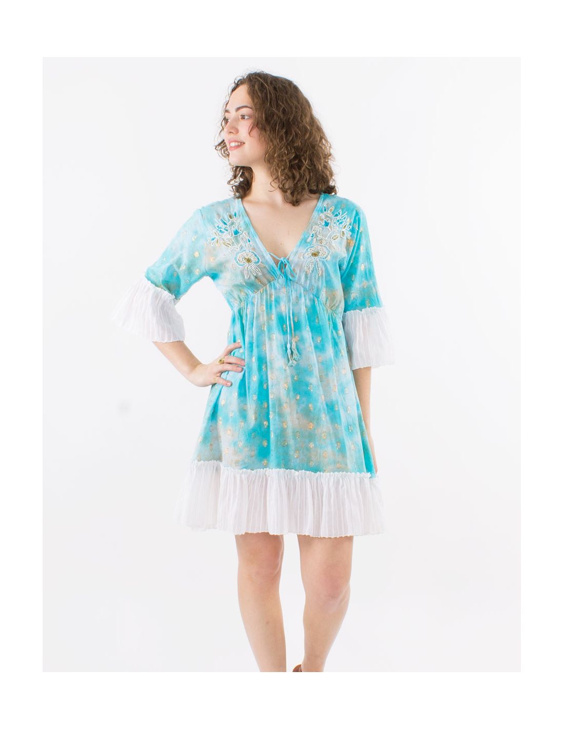 Vestido corto algodon tie and dye con perlas y fibras melaticas