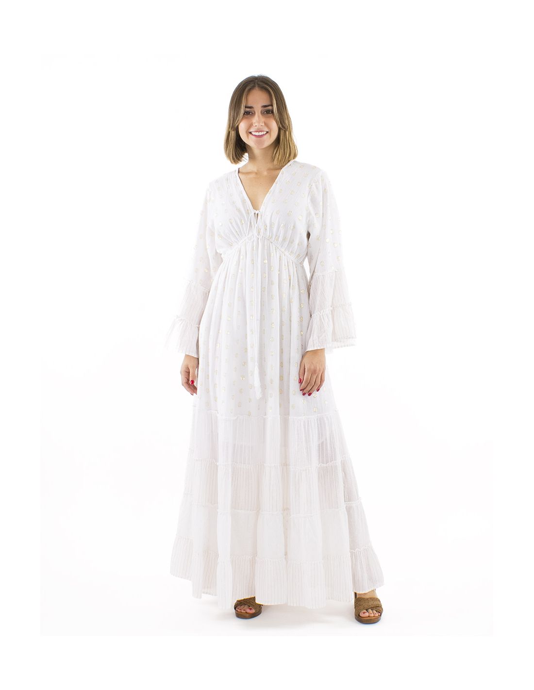 Vestido largo velo de algodon doblado con hilos metalizadosmangas largas