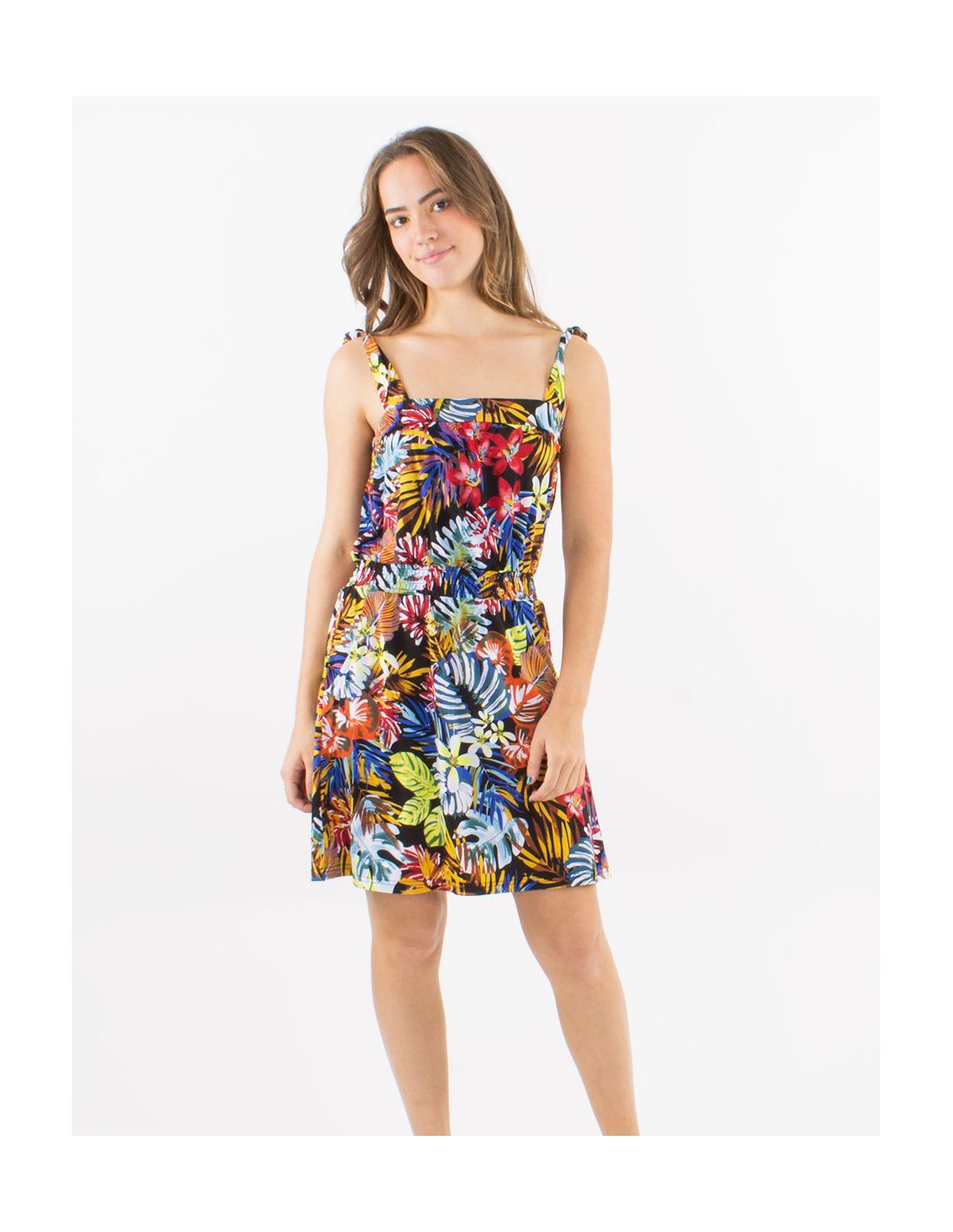 Vestido malla 96% poliester 4% elastano tirantes estampado jungla