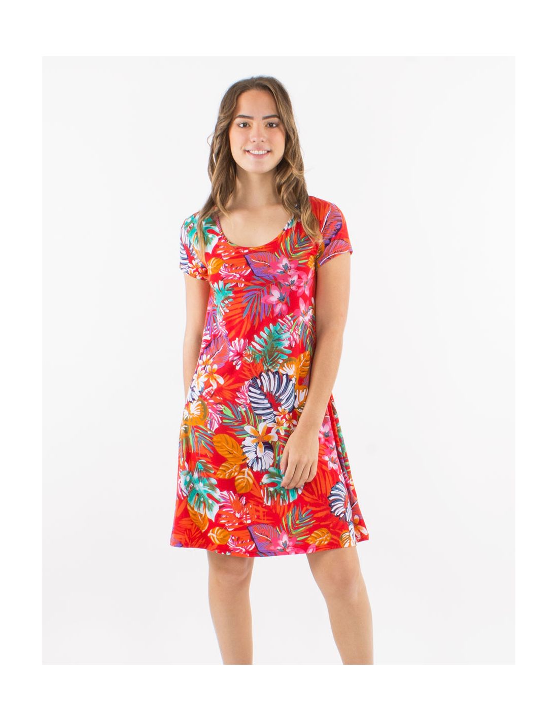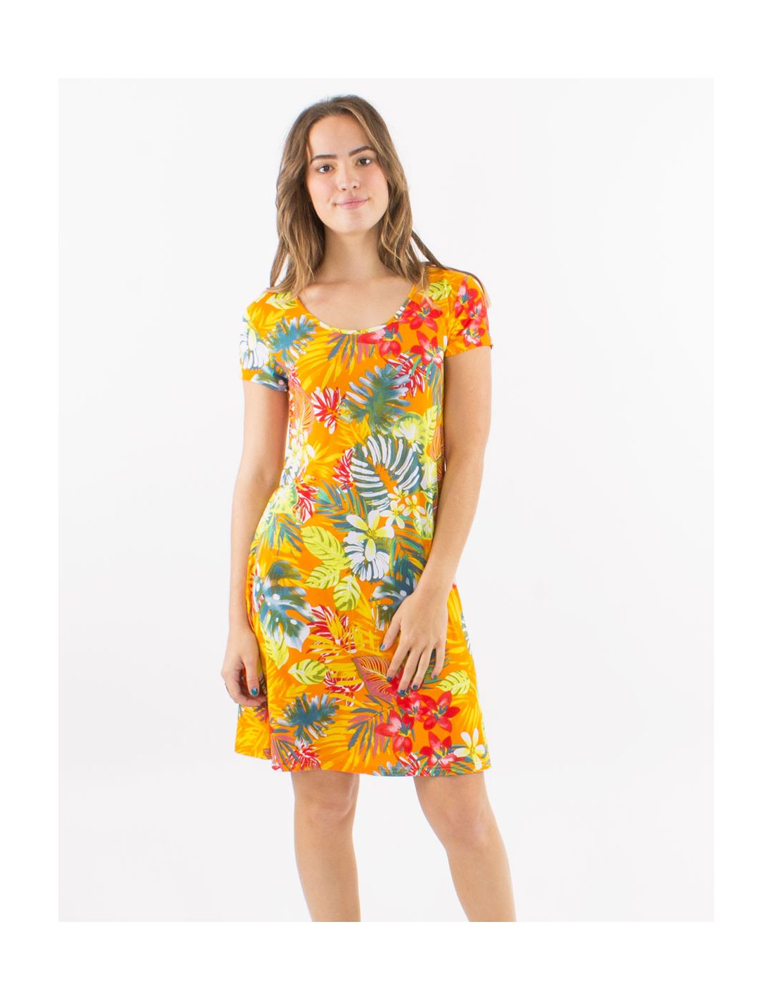 Vestido malla 96% poliester 4% elastano cuello redondo mangas cortas estampado jungla