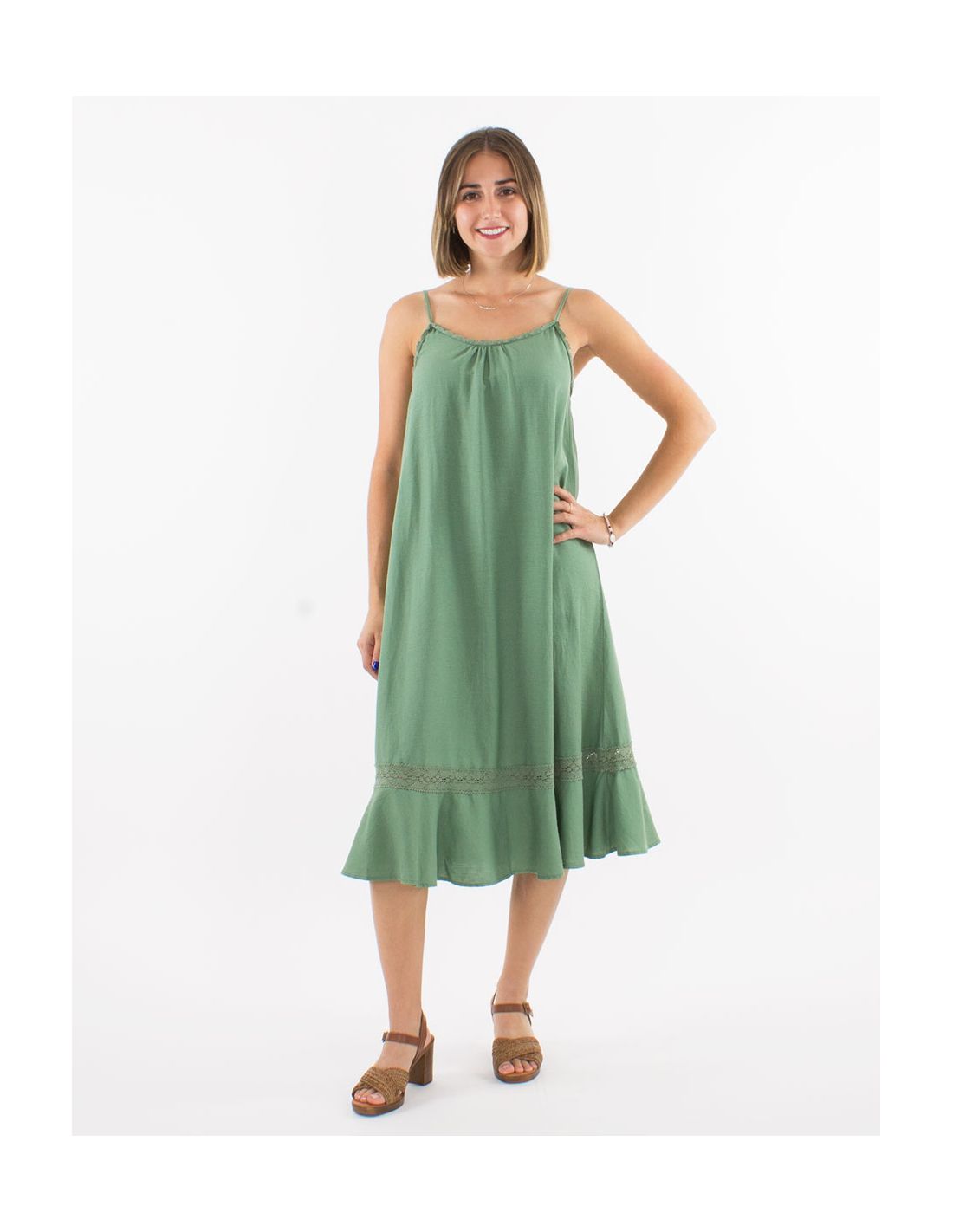 Vestido 54% lino 46% viscosa tirantes con cinta algodon bordada