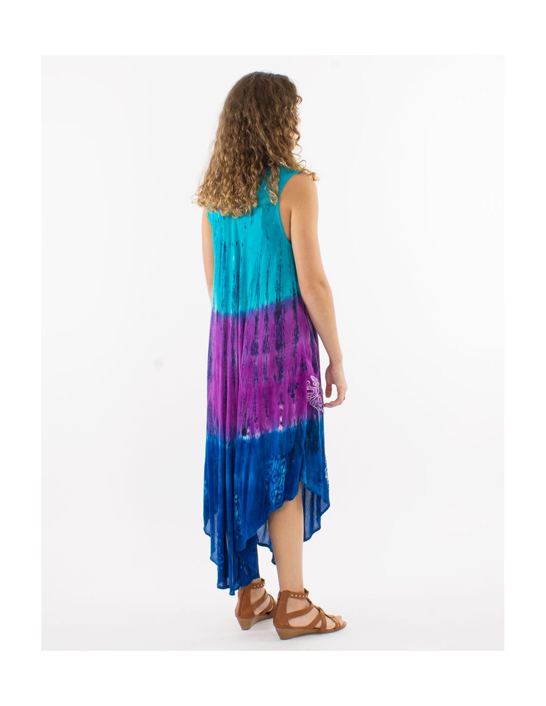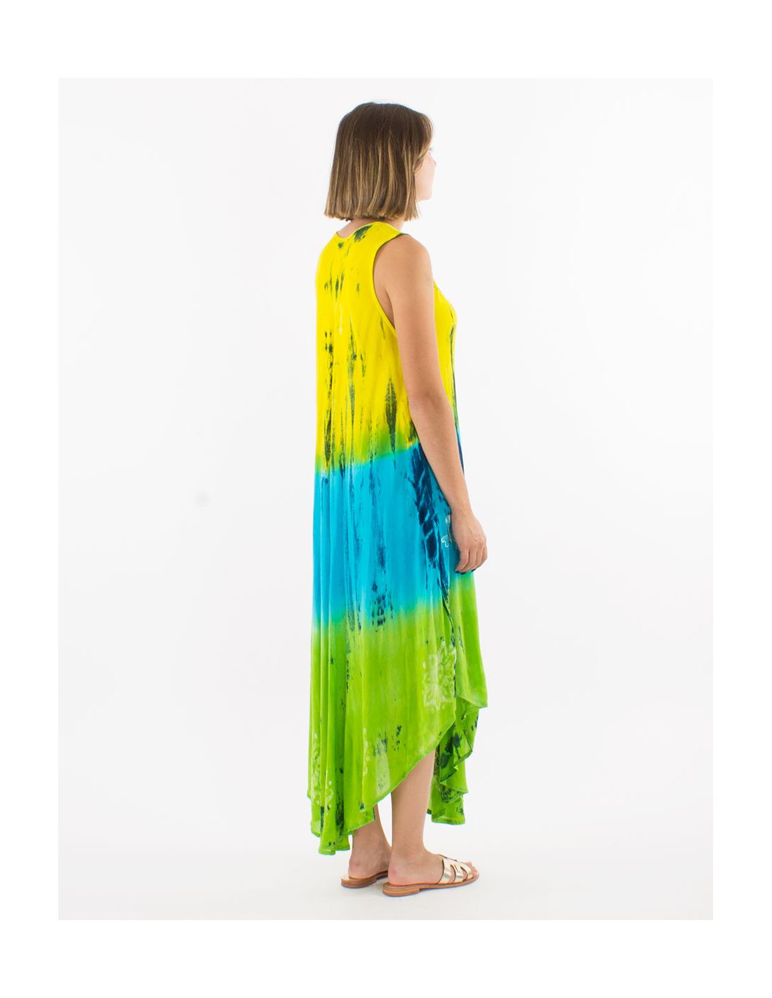 Vestido crepe de viscosa bordado sin mangas td umbrella