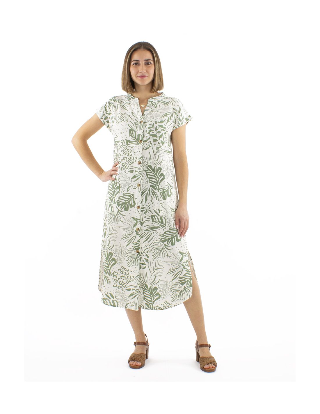 Vestido 70% viscosa 30% lino con botone 2 bolsillos estampado Natura